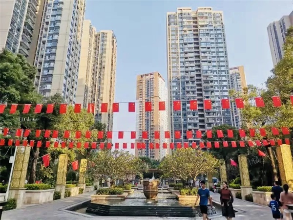 红旗飘飘迎风展,灯笼高挂添喜气。各园区国庆氛围日渐浓重,业主们在新鲜喜庆的装扮下感受新时代的美丽和谐,满园红色,传递着生活的美好之声。