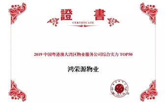 鸿荣源物业荣登“粤港澳大湾区物业服务公司综合实力TOP50”